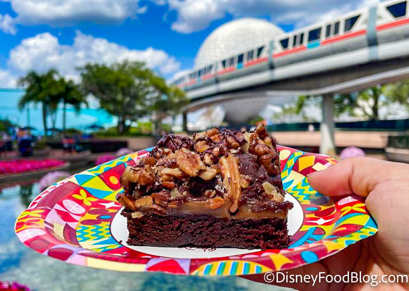 This brownie is chock full of flavor: chocolate, caramel, and pecans! We’re not always fans of the brownies in Disney World, but this one is a real winner!