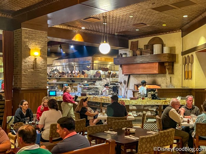 You’ll find Trattoria al Forno on Disney World’s BoardWalk. This eatery serves breakfast and dinner daily and is an “original Italian restaurant.” The dinner menu features regional specialties with classic preparations. Many of the ingredients are crafted in-house including hand-crafted mozzarella and handmade cavatelli. Trattoria al Forno also features seasonal risotto and serves only Italian wines.