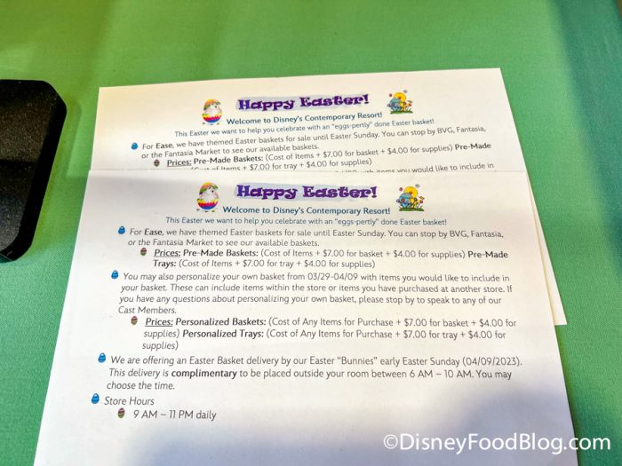 And if you’re staying at the Contemporary, Easter “Bunnies” will even deliver it to your door on Sunday! You get to choose a time between 6AM and 10AM for this complimentary service. What a way to wake up on Easter!