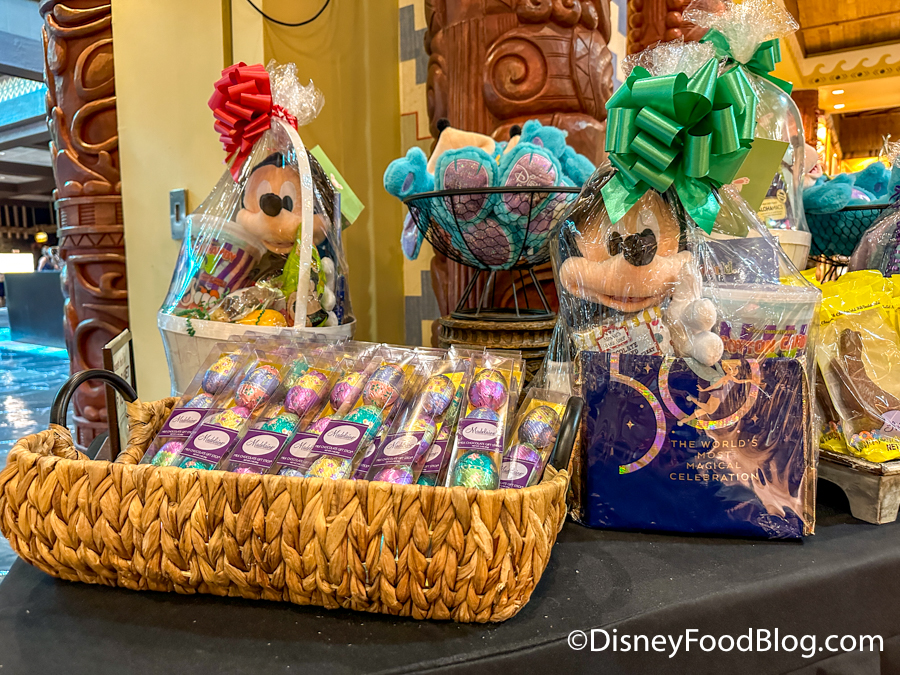 At Disney’s Contemporary Resort, we found a similar station for Easter baskets. There were some impressive-looking pre-made baskets in case you’d prefer the convenience, or you have the option to pick anything from the store to make it your own. This allows you to make one for any budget.