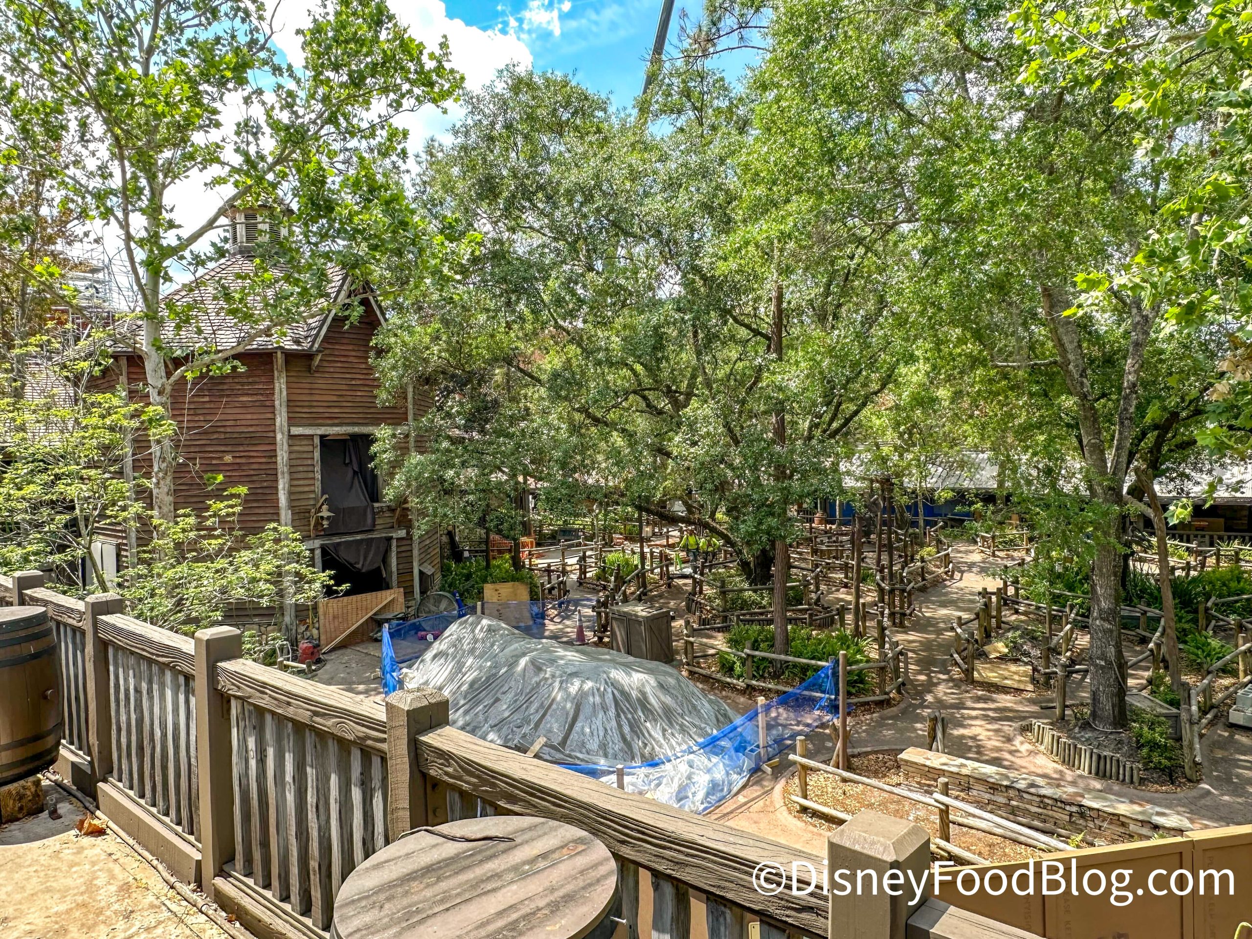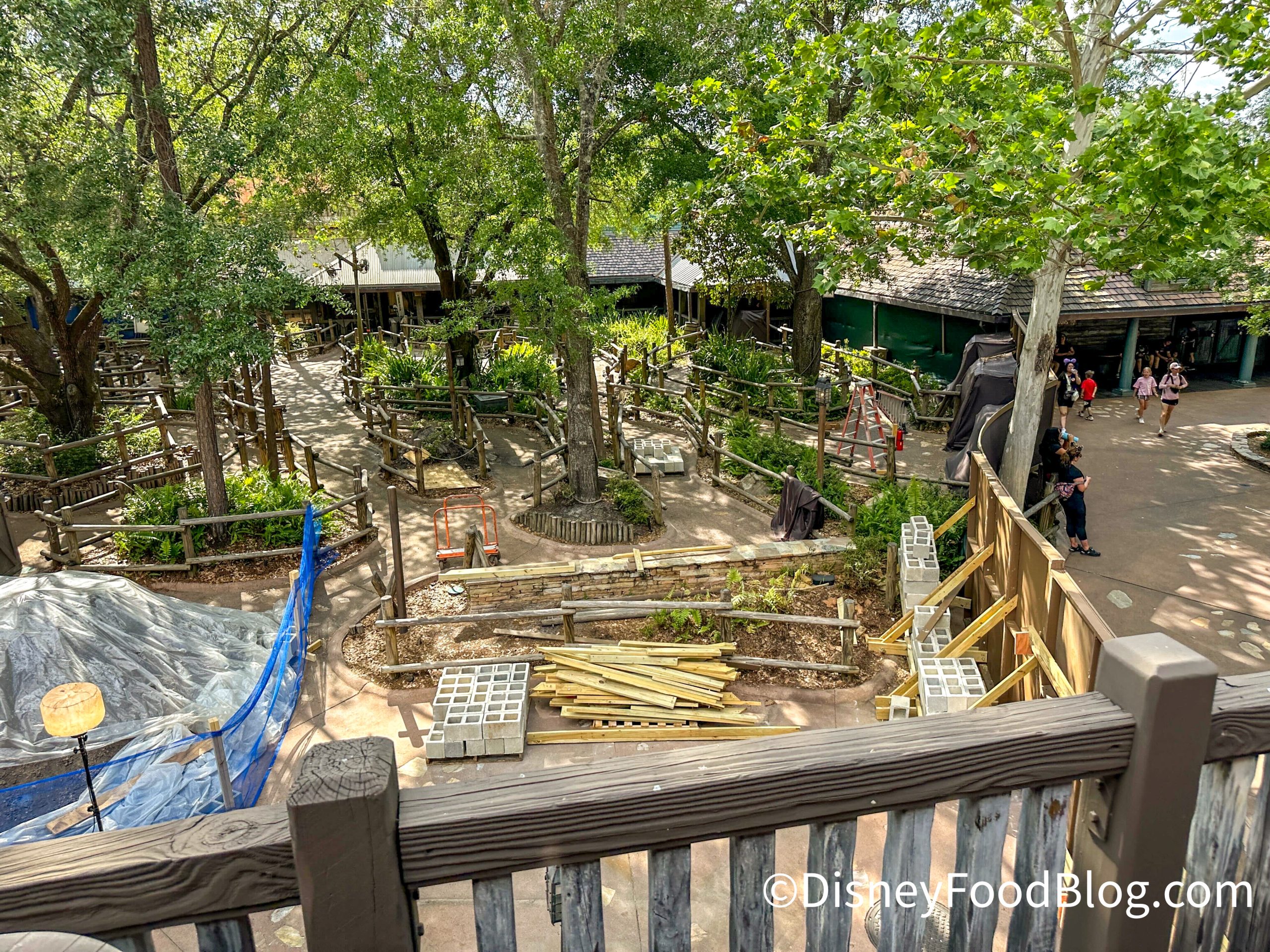 We noticed tarps in the queue line, as well as some wooden beams ready to go.