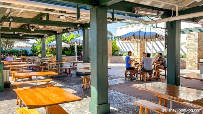 This location is heavily themed to fit into the world of Galaxy’s Edge and offers fun indoor and outdoor seating. The food is relatively approachable but with a “space” twist to make it fun.