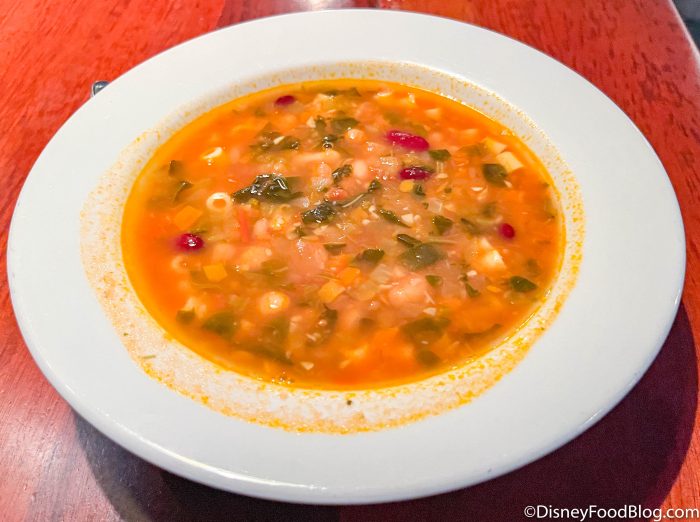 You can grab the Minestrone Soup with Ditalini Pasta as this is a plant-based dish. In fact, our plant-based reporter thought this menu item was packed with flavor and felt very comforting.