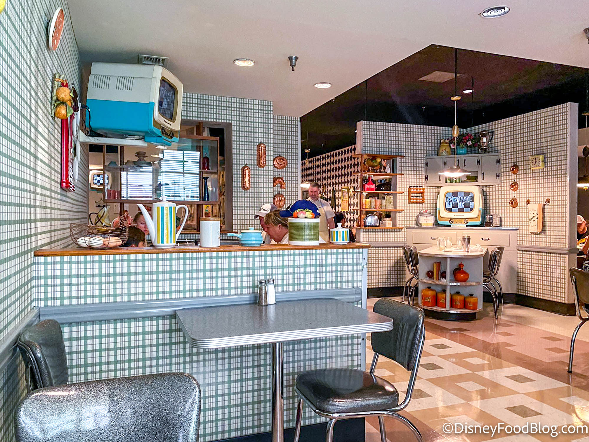 This sit down restaurant is ALL about the fun Cast Members serving you. You might get razzed for not finishing your veggies or not cleaning your plate — all while sitting in sitcom-style kitchen-themed rooms!