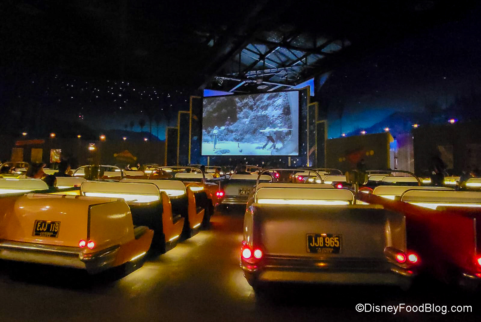 The REAL big draw here? You’re eating IN A CAR! Plus, it’s themed like an old drive-in complete with a screen playing old sci-fi hits.
