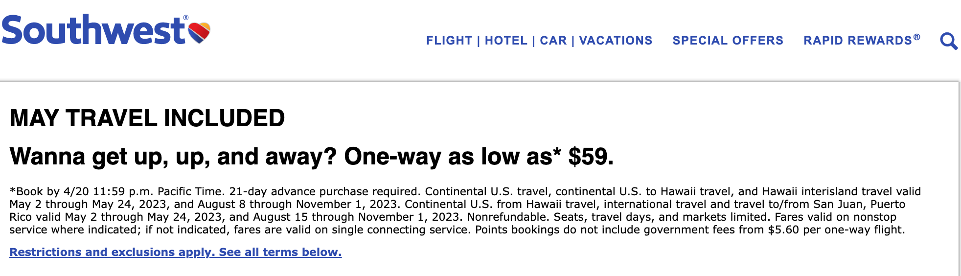 Southwest is currently having a sale on their flights for travel starting in May and beyond, and there are some pretty great deals you may want to snatch up.