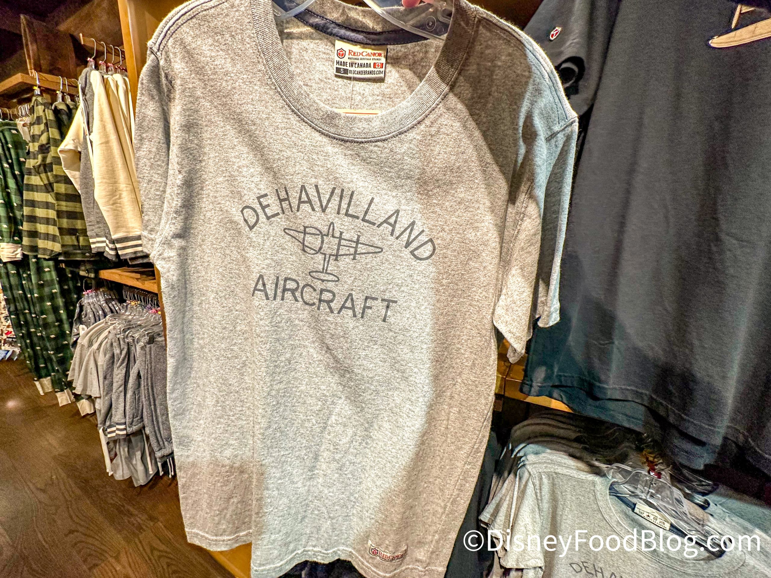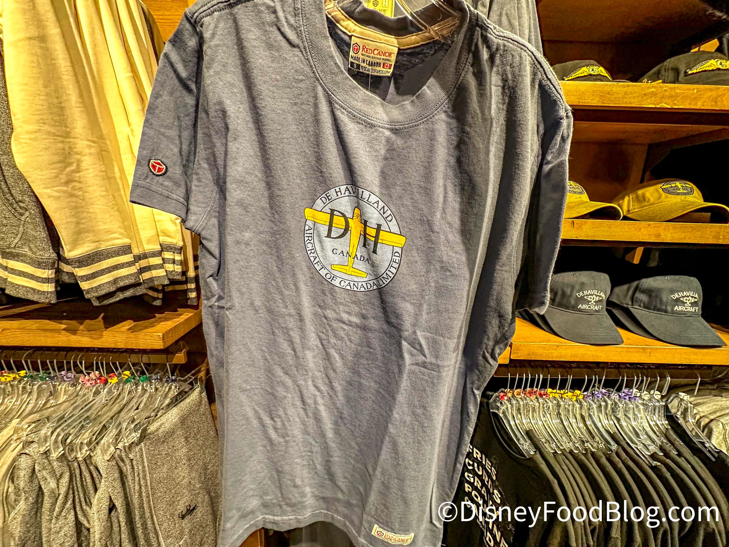 Over in the Canada Pavilion, there’s lots of new merchandise to grab, starting with the Canada Dehavilland Aircraft Shirt for $39.99…