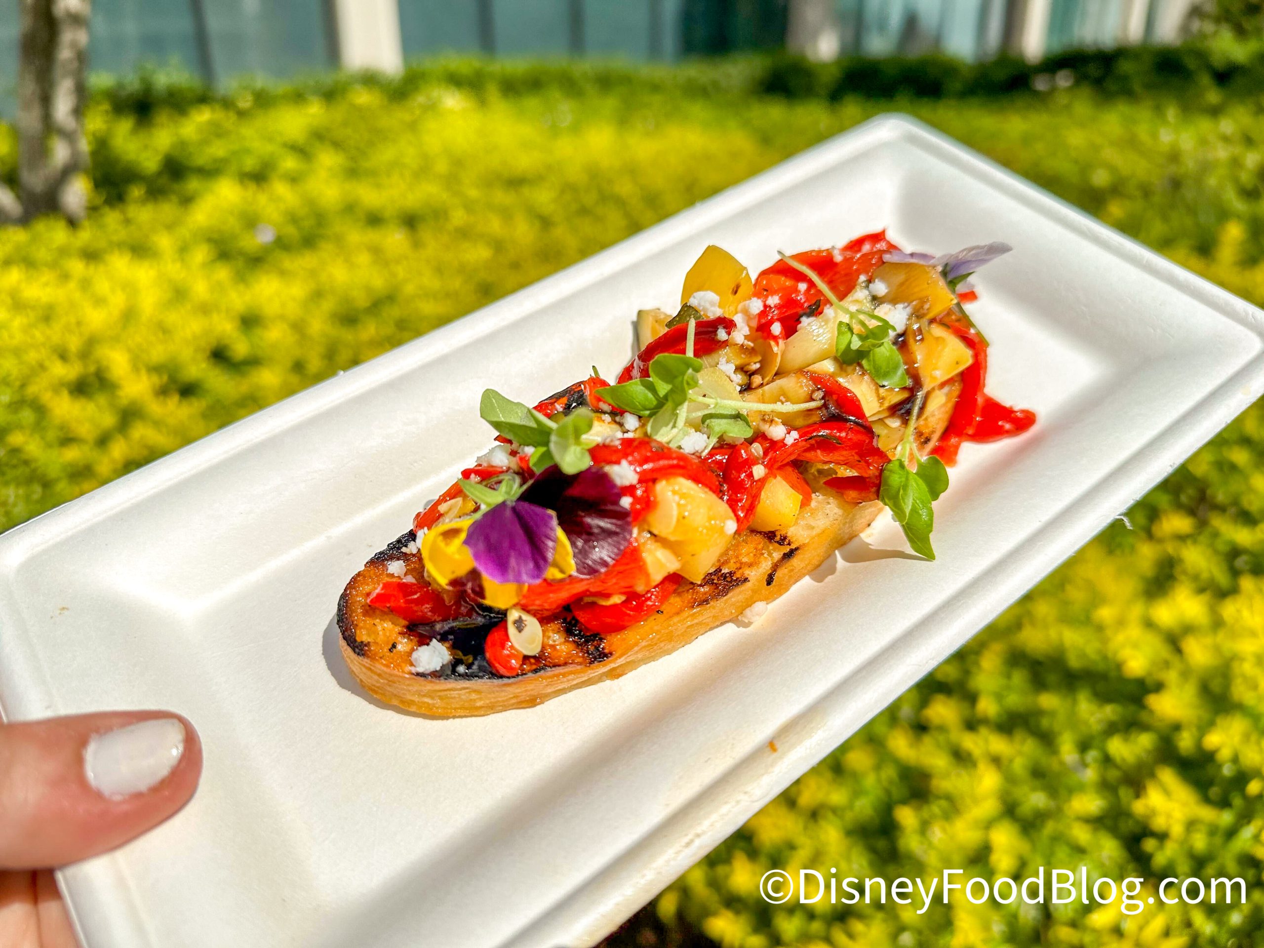 The Springtime Menu became available at the Farmers Feast booth at EPCOT’s Flower & Garden Festival on April 9th. You can now grab the Grilled Vegetable Bruschetta for $5…