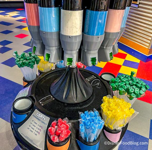 If you’ve ever walked through a Disney World gift shop, you may have seen (and tried to avoid, if you have kids) a Goofy’s Candy Co. Powdered Candy station. You know the drill — grab a big long tube, fill it with sugar, and probably spill a little.