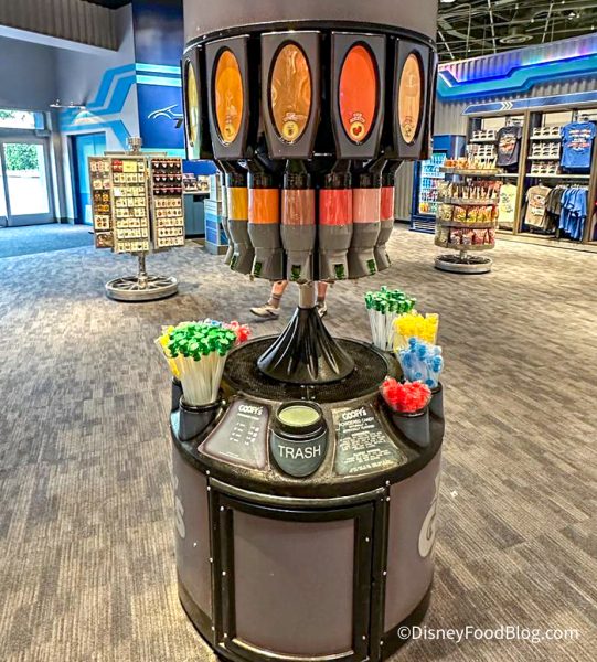 We spotted two powdered candy stations in EPCOT. One was located in the ImageWorks gift shop and the other was located in the Test Track gift shop.