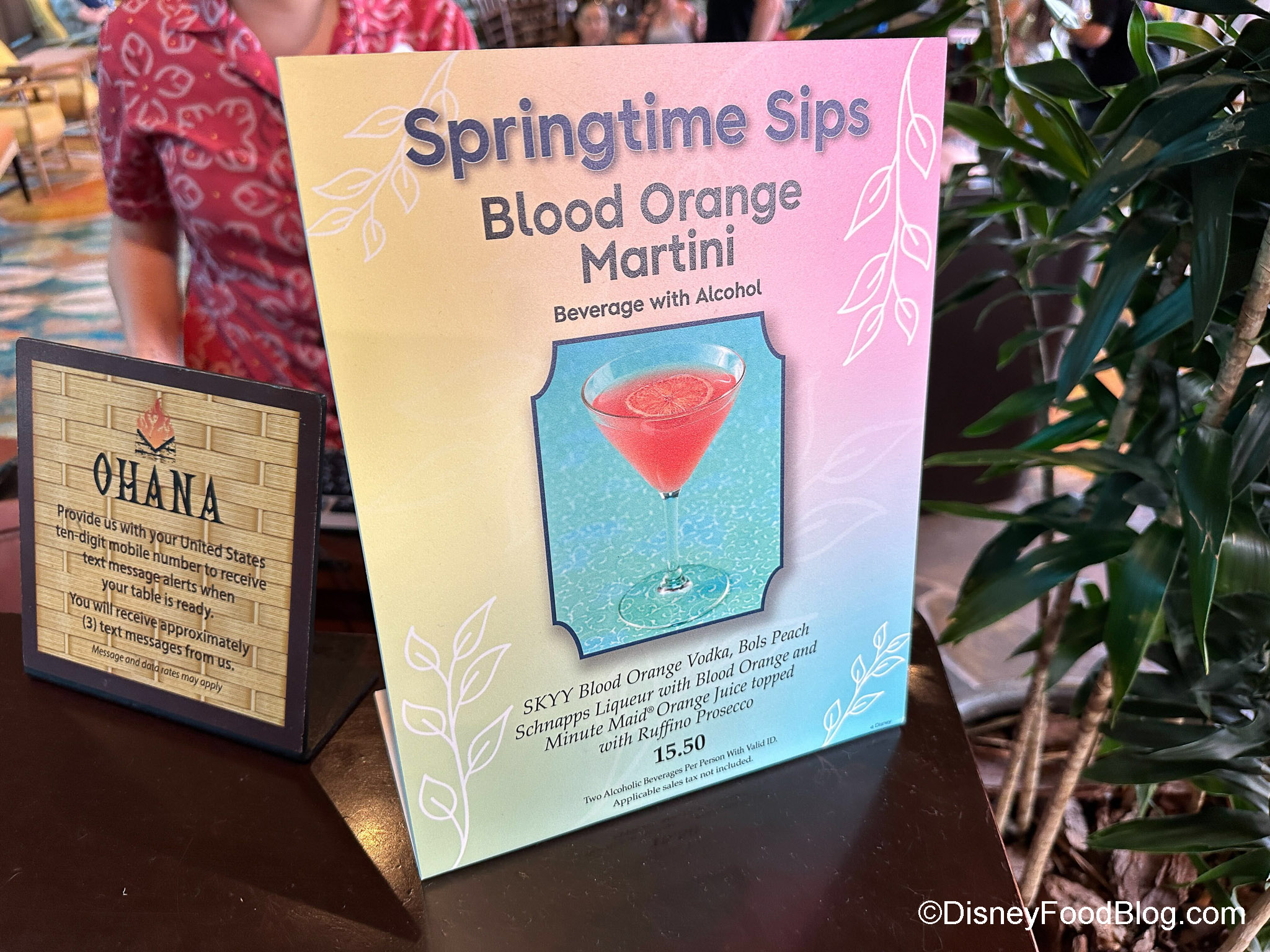 The Springtime Sips cocktail at ‘Ohana is also the Blood Orange Martini for $15.50.