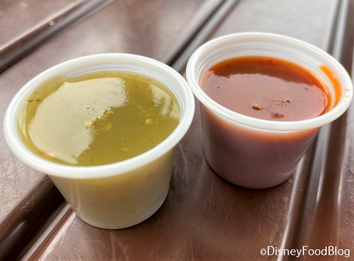 There’s currently a choice of mild Salsa Verde or hot Chipotle salsa.