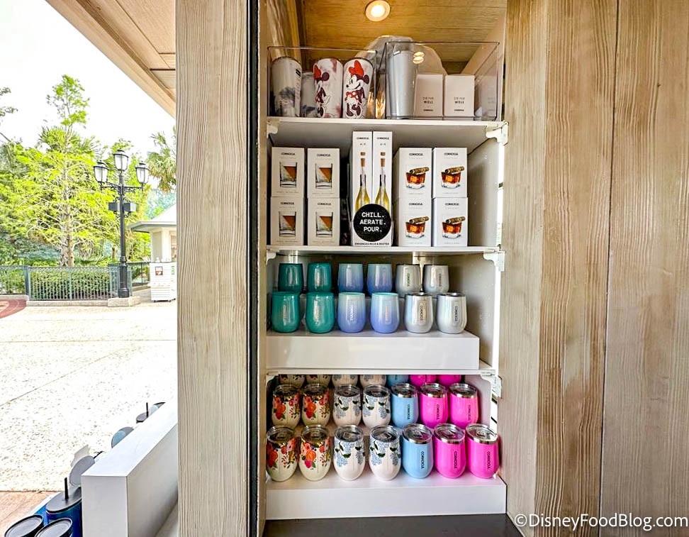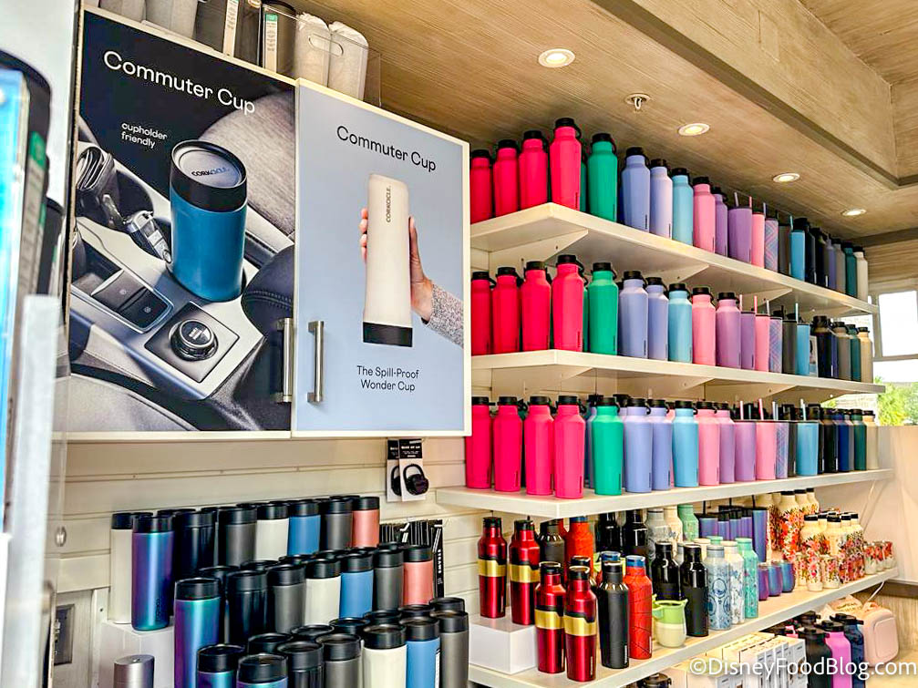 The kiosk has allllll kinds of Corkcicle essentials to keep you hydrated throughout your Disney World trip and beyond.