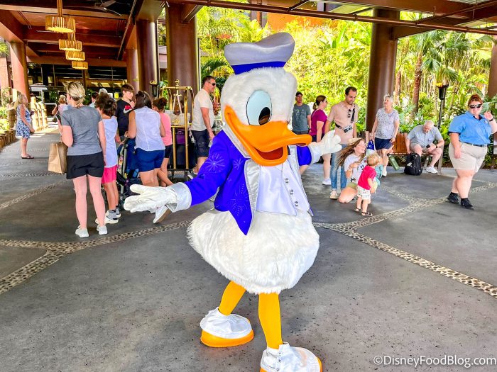 During our time at the hotel, the characters only stuck around for about 20 minutes (but the bus was parked there for about 15 minutes before the characters came out), so don’t expect them to be there for too long.