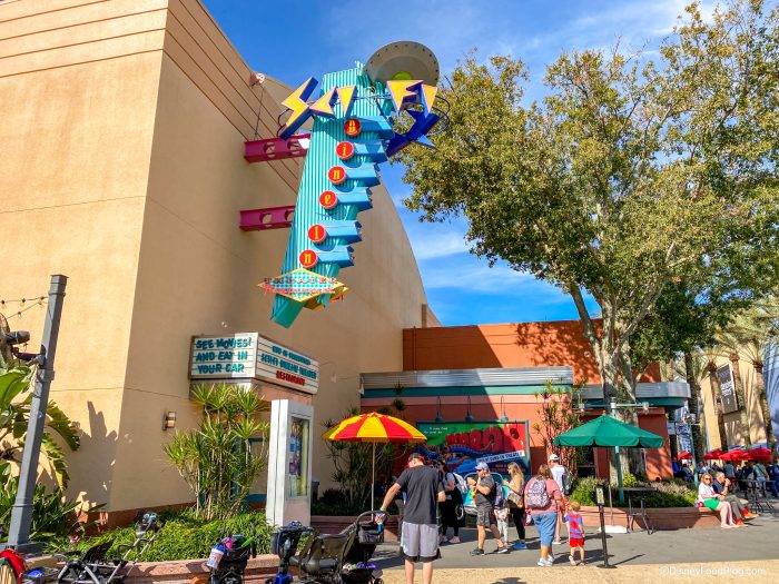 Located at the end of Commissary Lane, Sci-Fi Dine-In Theater is centrally located within the park. You’ll find a welcoming respite mid-day when you can take a break from the Florida sun.