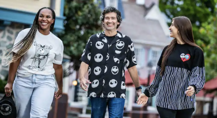 There are three new Jack Skellington shirts that will be available — a white T-shirt, a black and white button-up, and even a Jack and Sally Spirit Jersey.