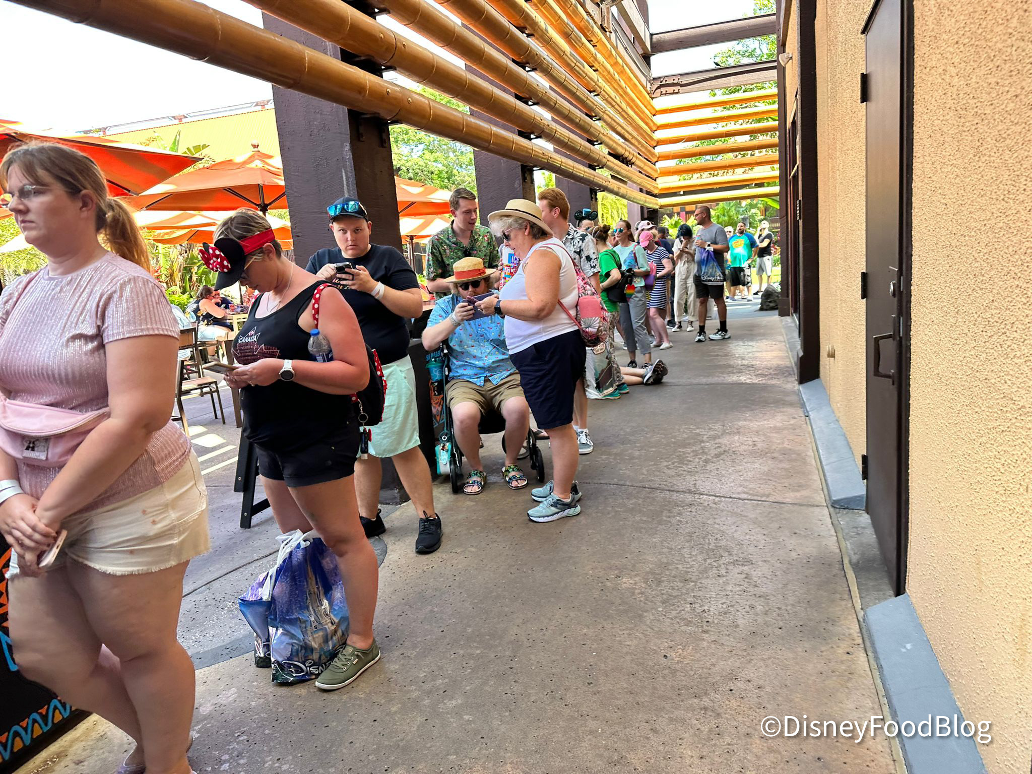 After we finished our drink, we decided to head outside and grab our mug! When we arrived outside, the line was growing longer by the second. It stretched way out past the lawn at the resort! It stretched way out past the lawn at the resort. However, we didn’t have to wait in this line, and we’ll tell you exactly how we avoided it.