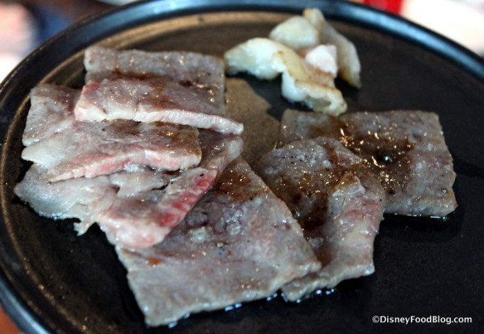 The Japanese A5 Wagyu Beef is priced per ounce — $32 currently — and there’s a minimum order of three ounces. All wagyu is prepared table side on an ishiyaki grilling stone.
