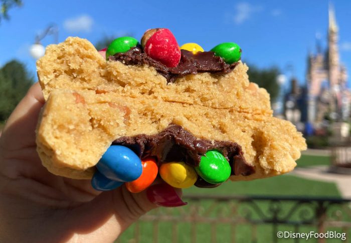 Our NEW go-to sweet-treat is the Peanut Butter Cookie Pie over at the Main Street Confectionery in Magic Kingdom. This option was added to the confectionery’s dessert line-up after the shop’s big remodel back in 2021. It’s made with a Peanut Butter Cookie, Chocolate Frosting, and Peanut Butter M&Ms.