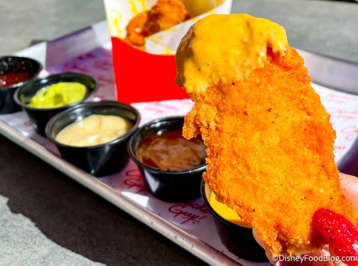 Chicken Guy! — headed by Guy Fieri and restauranteur Robert Earl — has its Flagship location in Disney Springs. Sure. You can get chicken tenders and fun sauces outside of the Most Magical Place on Earth. But…have you ever gotten them like THIS?!