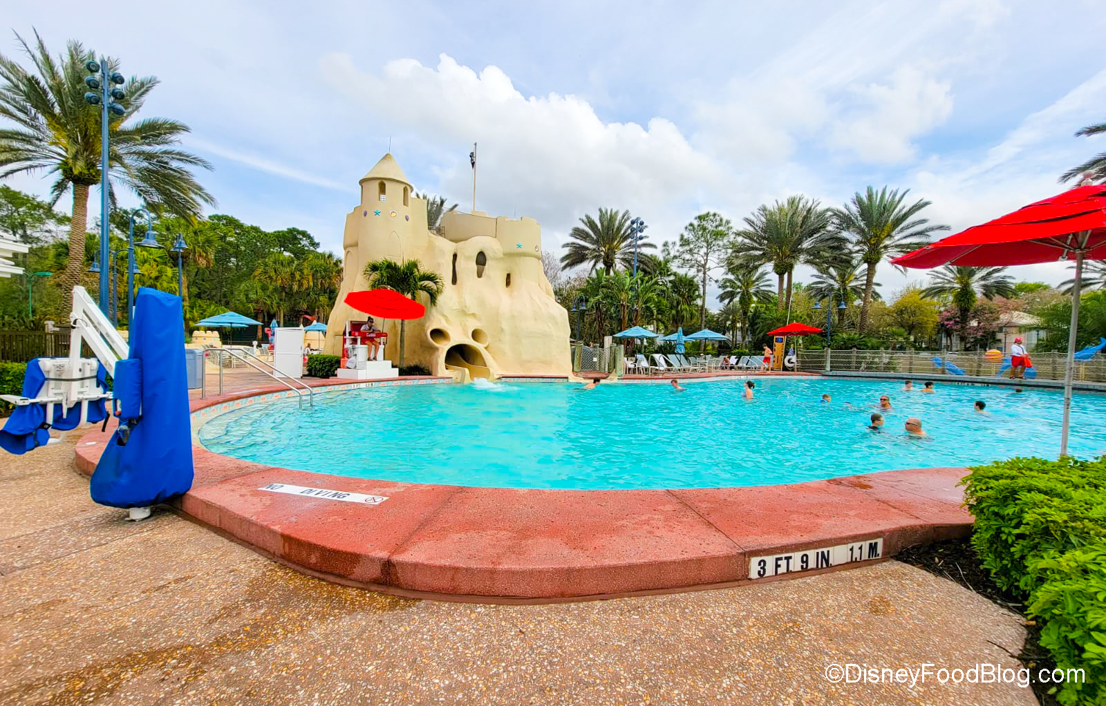 When the weather is HOT or you just need a break from park queues, head to your resort pool! After all, the pools have their own unique features and special theming. Feature pools at Walt Disney World hotels usually have at least one slide and also offer poolside activities. Look at the hotel’s recreation schedule for more information. Some Disney resorts are so spread out that they also offer leisure pools. These swimming spots are family-friendly with at least one whirlpool spa. Leisure pools are quieter than the more crowded and active feature pools.