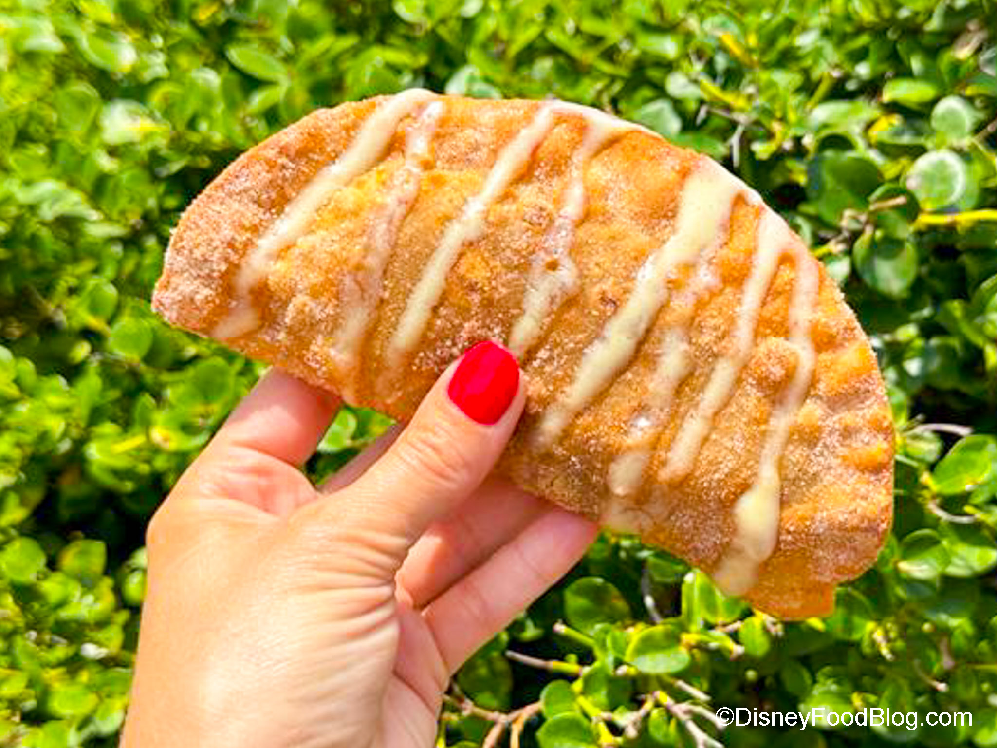 So we’re starting our snack hack over at Friar’s Nook in Magic Kingdom, where we recently tried — and LOVED — the Caramel Apple-Pecan Hand Pie. This snack is SO delicious on its own — who doesn’t love the taste of apple pie? This hand pie has a delicious Flaky Crust and is filled with Apples and Pecans and topped with Caramel Sauce.