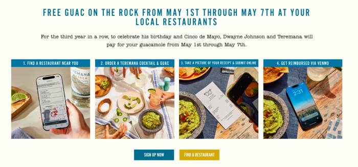All you’ll have to do is go to a participating restaurant, order a Teremana cocktail and guac, take a photo of your receipt, and submit that picture online. You’ll be reimbursed through Venmo.