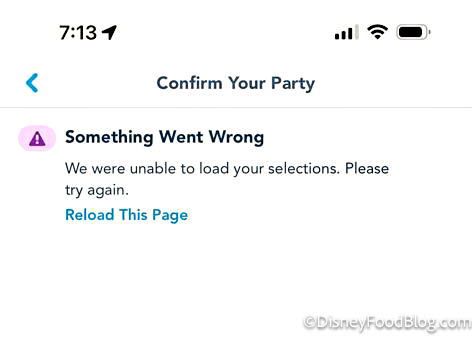 So essentially, if you were trying to make plans for Disney World today, you likely encountered some problems. If this happens during your trip, the best thing you can do is to keep checking back in the app to see when things return to normal. The unfortunate thing is that refreshing the app over and over is definitely a pain and could be a hindrance if you have plans in the morning before you go to the parks — nobody wants to spend breakfast glued to their phone.