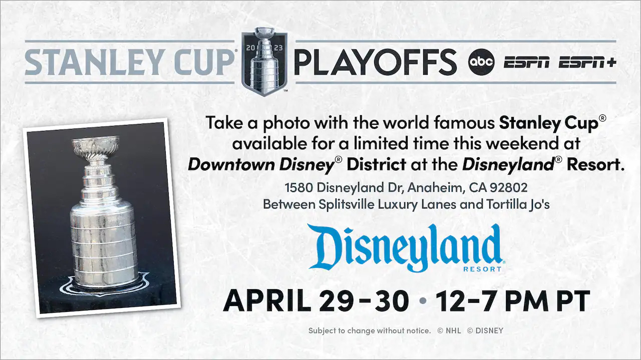 If you have ever wanted to see the famous Stanley Cup in person, this is the weekend event for you. This weekend only, from April 29th through the 30th, the Stanley Cup is coming to Downtown Disney. From 12PM to 7PM, visitors can get their picture taken with it.