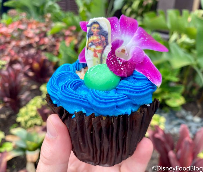 - Moana Cupcake: Vanilla cupcake, toasted coconut mousse filling, buttercream, coconut flakes, and white chocolate Moana piece with a fresh orchid