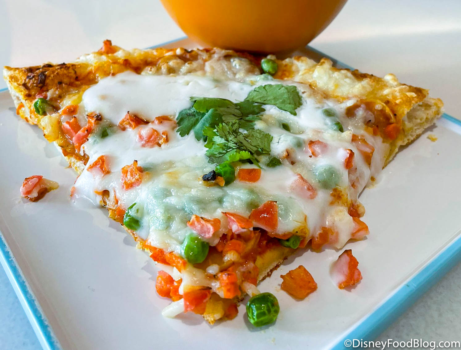 - Curry-spiced Pizza: Two slices of freshly baked pizza topped with tikka masala, carrot, potato, peas, tomato, plant-based mozzarella, and lime “yogurt” (Currently available through June 1)