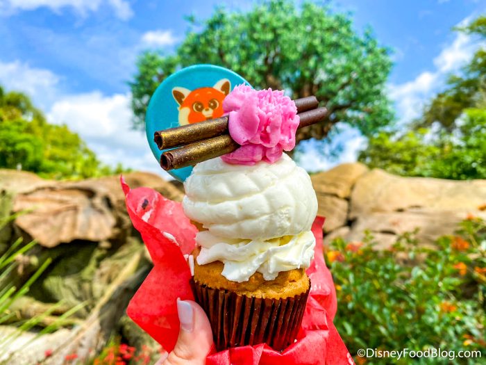 - Turning Red Cupcake: Vanilla cake, mandarin cream filling, honey mousse bao bun, crispy pearls, sweet magnolia blossoms, chocolate garnish, and the Asian-Canadian character Meilin panda on white chocolate medallion