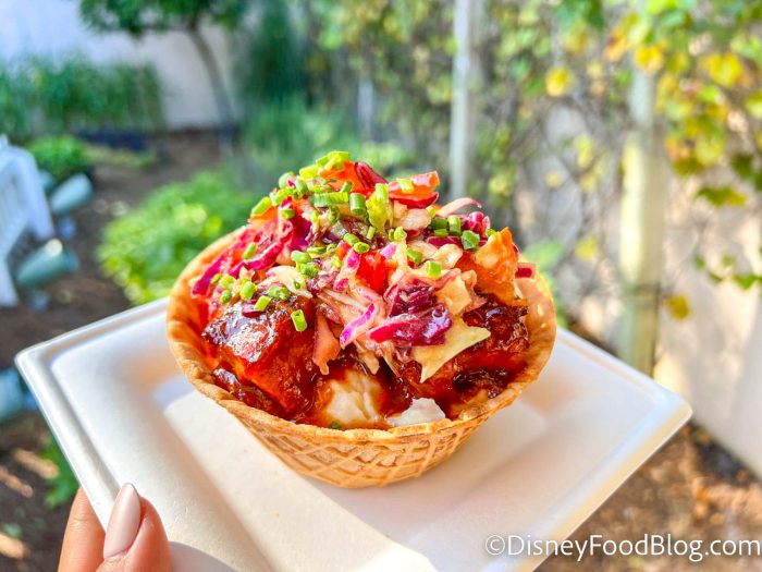 - Korean Barbecued Pork Belly Bowl: Braised pork belly tossed in Korean Barbecue sauce topped with Korean Salad and green onions served on mashed potatoes in a waffle bowl