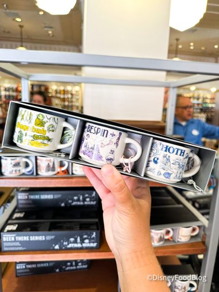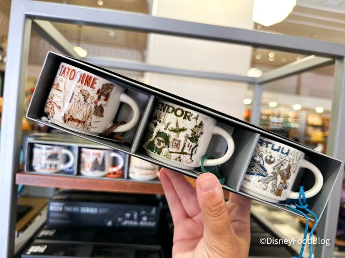 A fan-favorite souvenir for many are the specially-themed Starbucks “Been There Series” mugs that can be found around the Disney Parks. We’ve seen Star Wars Starbucks mugs pop up in the parks in the past that feature the fictional planets and cities that appear in the movies.