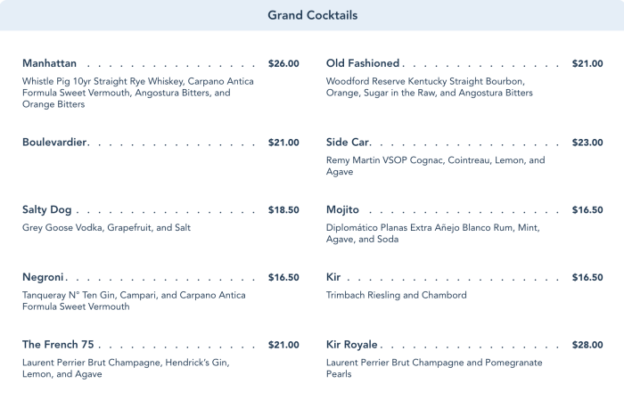 You can find a seat at the bar itself or at one of the small tables around the bar. Those tables have gorgeous views of the Grand Floridian and Seven Seas Lagoon.
