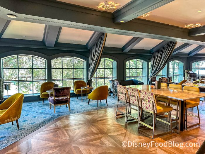 We love the theming of this lounge! It’s a great mix of Disney and elegance. The special nods to the Beauty and the Beast movie are hidden, but as Disney adults, we appreciate them.