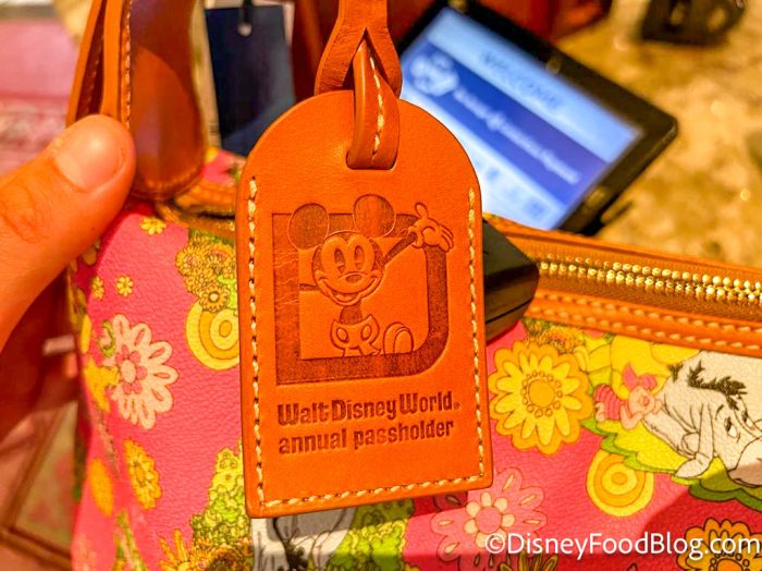 It has a smaller strap and a little Annual Passholder logo tag on the side. Other than that, it’s the same pattern as the others. You’ll need to show your Passholder ID to purchase, and it’s available while supplies last.