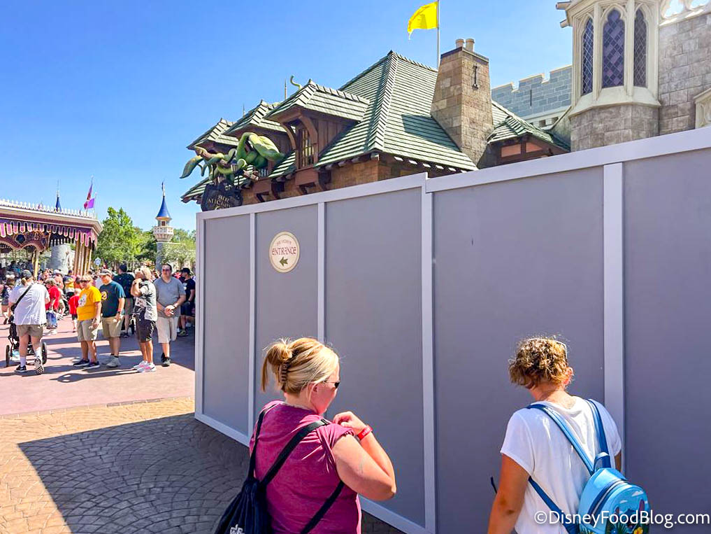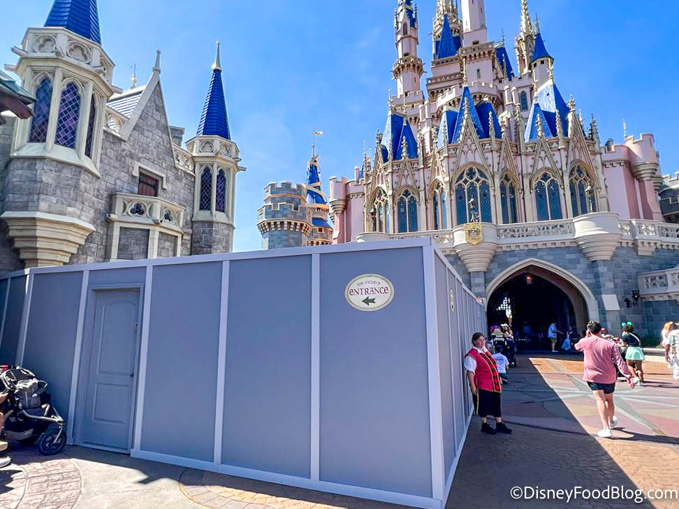 If you’re hoping to get some gorgeous behind-the-castle shots, know that they’ll be impacted by these walls, and you’ll want to follow the signage carefully to find the entrance to Sir Mickey’s.