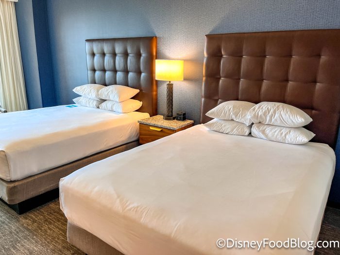 Now, let’s check out the room! One of the rooms we toured was the Two Queen Room with a View, which sleeps four people.