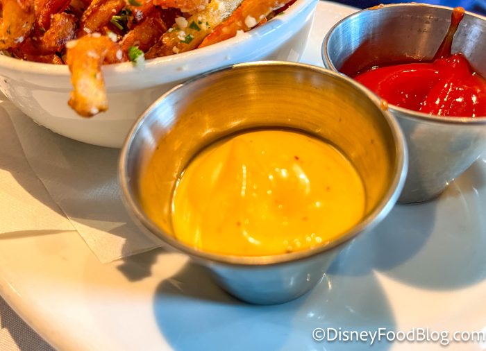 As a side dish, I got their Truffle Fries, which are topped with truffle oil, parmesan, and parsley. They cost $11.50 and come with little ramekins of ketchup and a Lemon Aioli.