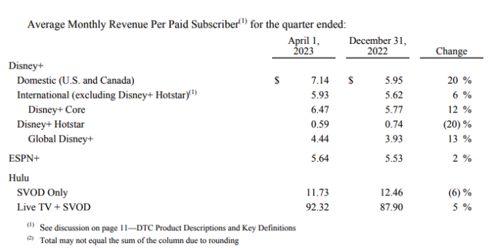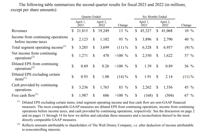In terms of overall financial results, here’s what Disney has reported for Q2 of FY 2023: