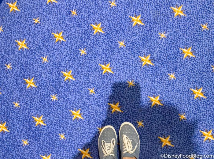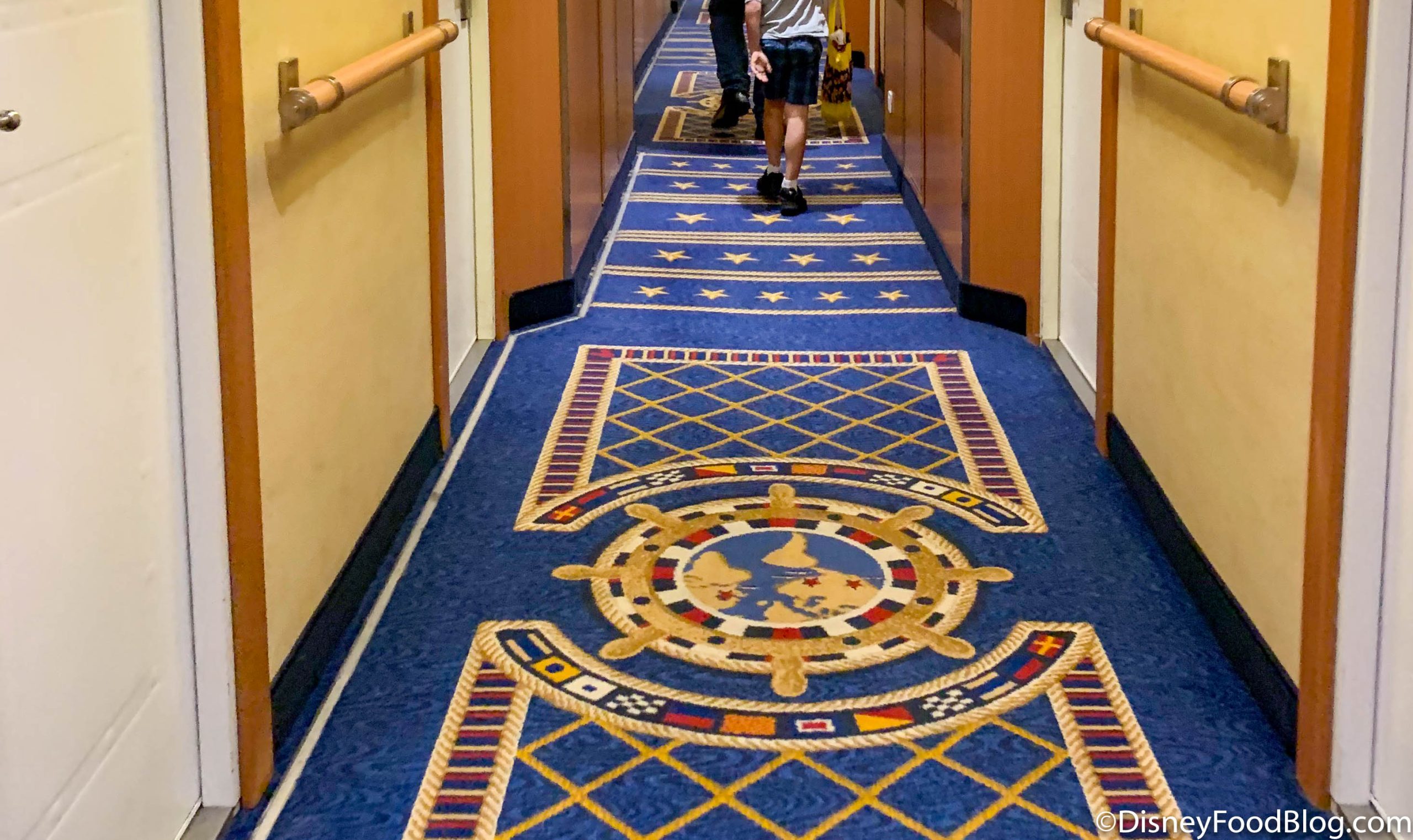 If you’re getting overwhelmed trying to find your way back to your room, just look down! The carpets generally feature stars or Mickey Heads, if you’re cruising on the Wish. If the stars/Mickeys are pointing straight (meaning the peak of the star is pointing forward, in the direction you’re walking), then you’re walking forward. If the stars are not pointing straight, then you’re headed aft!