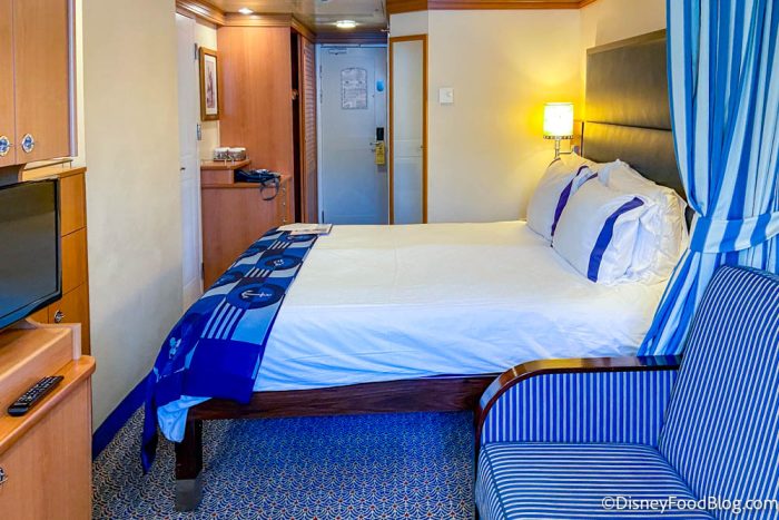 So instead of having regular old light switches in each of the staterooms, you’ll turn on the lights by inserting a card into the light slot that’s next to the door. Disney would like you to use your key card since that forces you to retrieve it and turn off the lights before you leave the room, but — um — not everyone always remembers to do that. Meaning you could very well accidentally lock yourself out of your room. Er… Whoops?