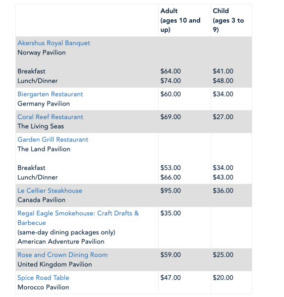 Eat to the Beat Dining Packages will also return this year. Here’s a look at the restaurants with dining packages and the pricing for each package.
