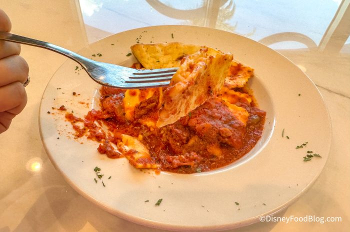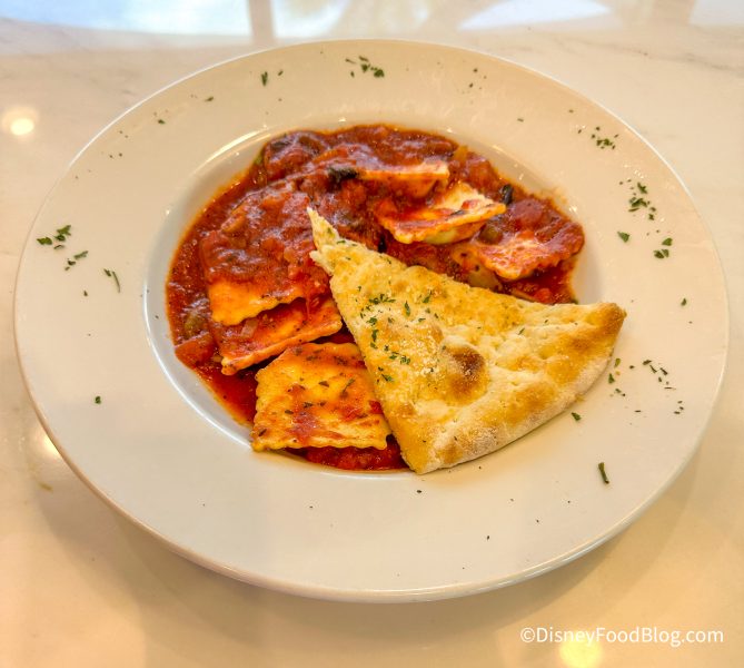 The sauce was heavy on the garlic but tasted good. The ravioli was cooked great and tender. It also came with a piece of Foccica bread, which was moist and a nice addition.