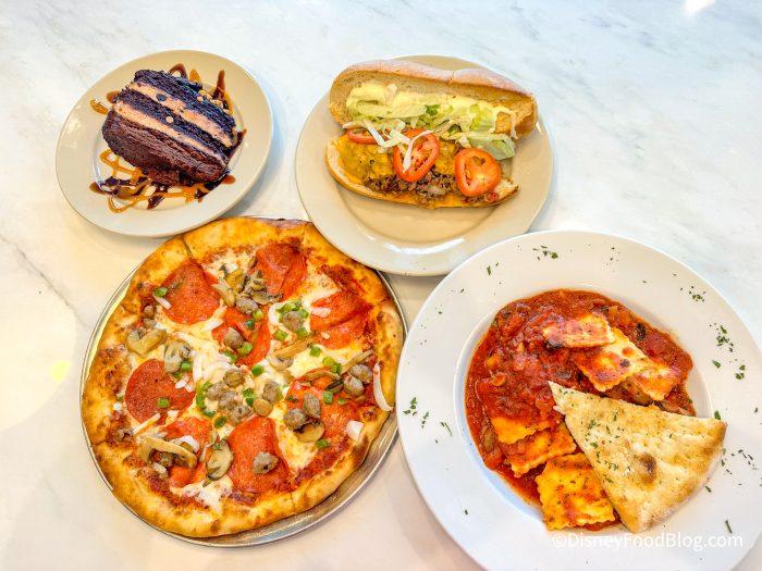 We tried the Build Your Own Pasta, Build Your Own Pizza, the Philly Cheesesteak, and the Peanut Butter Explosion Cake. So let’s break them down.