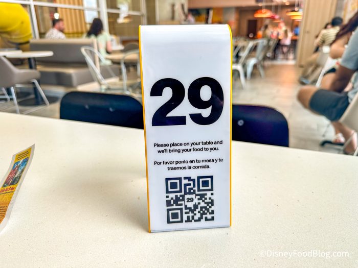 Once you placed your order and paid, you picked up a table number to place on your table so that a worker could easily find you. This allows you to sit instead of standing and waiting for your food to be ready.