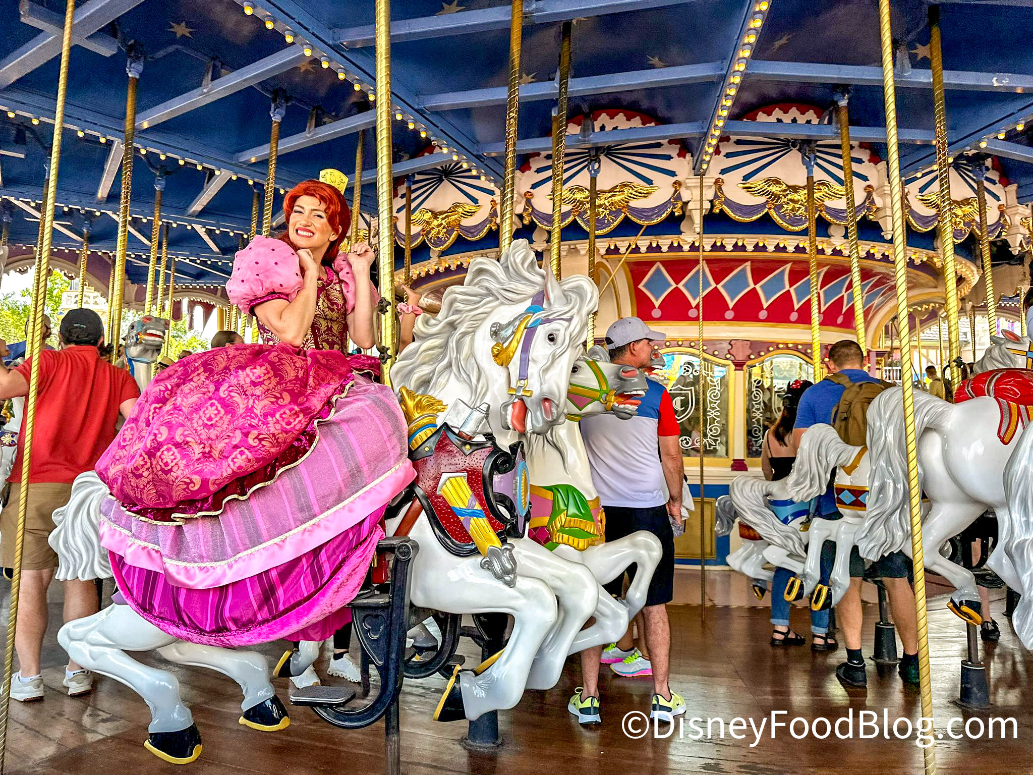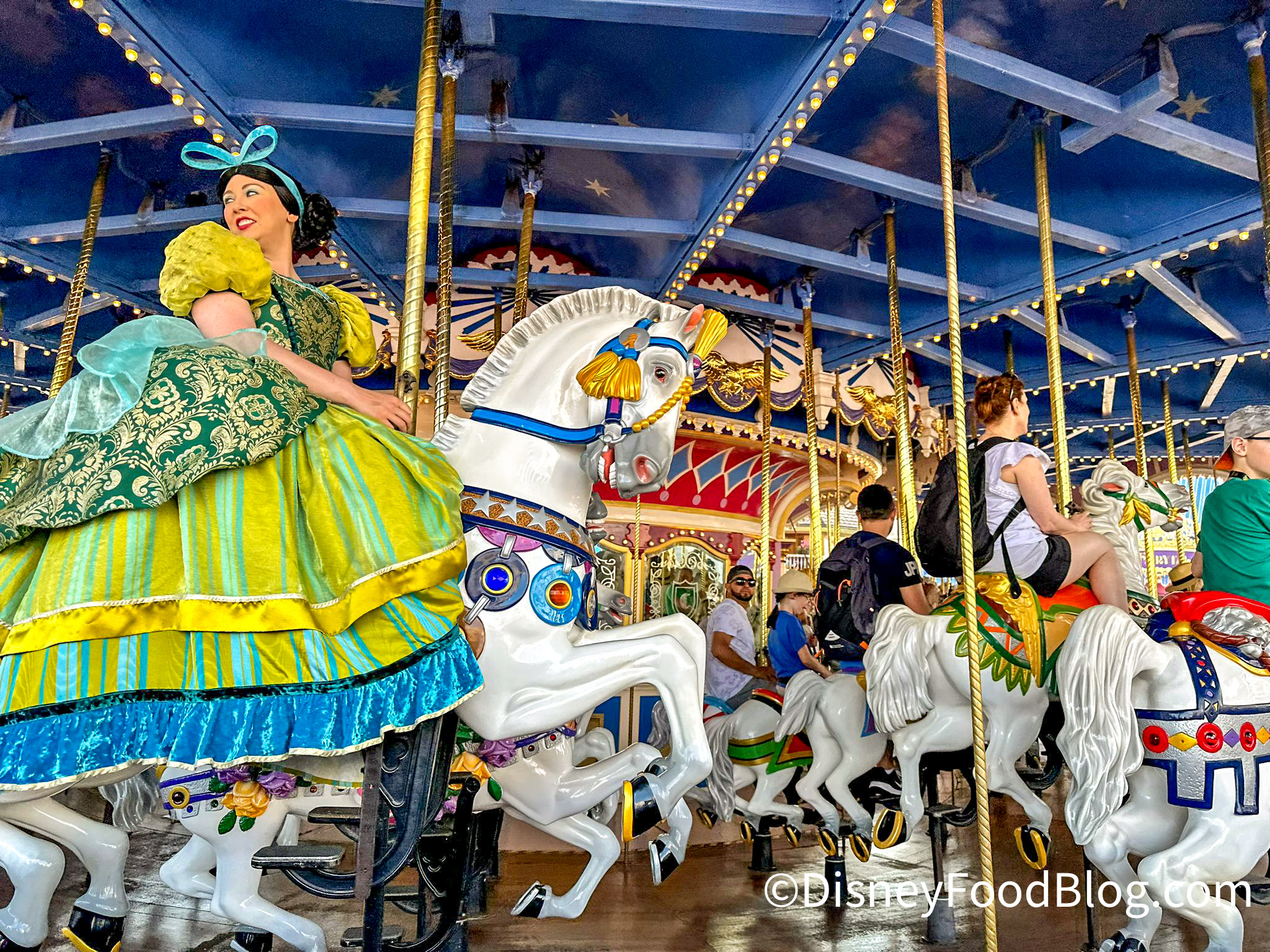 Yep, Anastasia and Drizella were having a blast riding on the Carrousel with other guests. Can you imagine getting to ride with a Disney character? Especially these two villains? (YES, they ARE villains even if they’re kind of sub-par junior villains compared to their mother.)