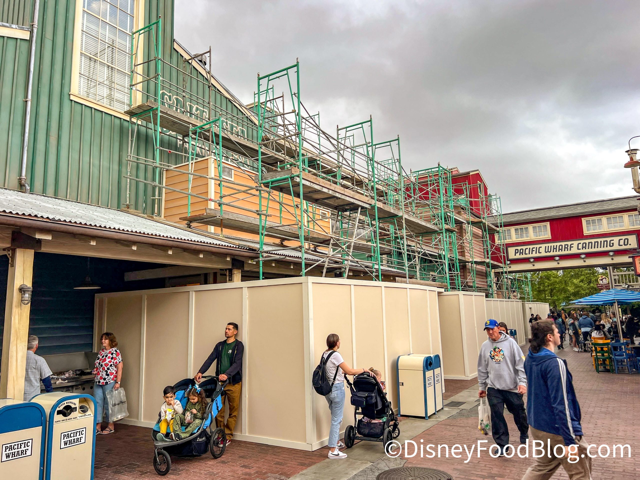 Over in Disney California Adventure, there are walls and scaffolding up around the bread factory tour and Pacific Wharf Cafe.