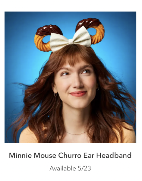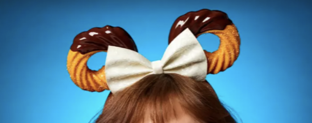 The ears themselves look like churros dipped in the iconic chocolate sauce, and the headband features a white bow, which appears to be textured. Those churros absolutely look good enough to eat, but we’re 99.9% sure they WON’T actually be edible, so we’ll try to restrain ourselves.